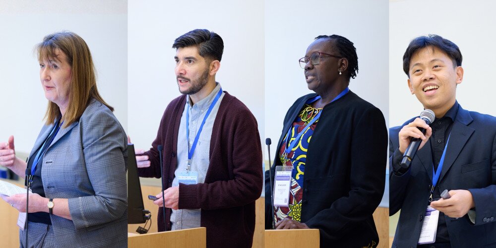 Keynote session and case studies presentation (from left to right, up to down): Professor Freda Wolfenden, Dr Alvaro Gonzalez Torres, Professor Betty Ezati,